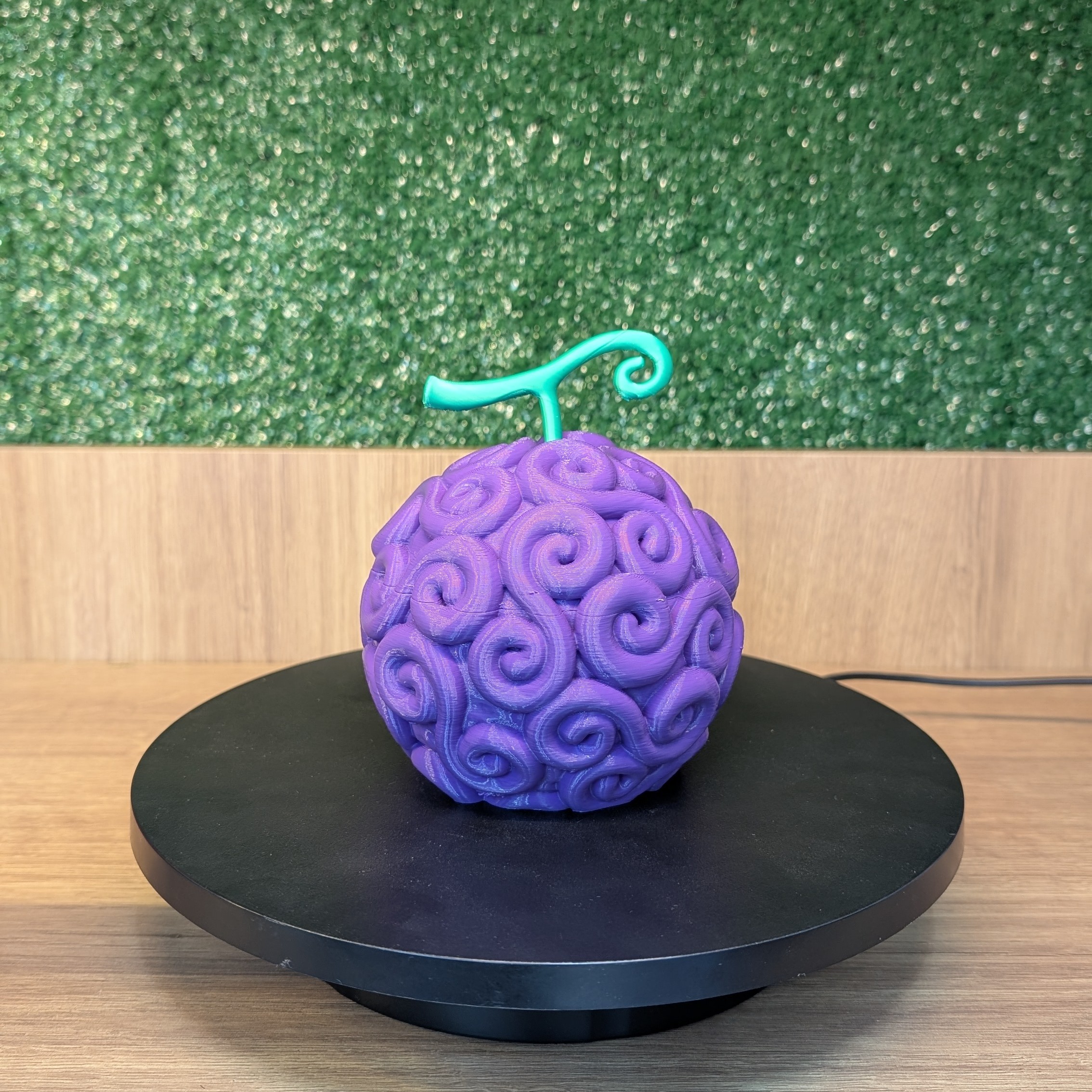 A icônica Akuma no Mi Gomu Gomu no Mi, diretamente inspirada no universo de One Piece, recriada em detalhes para colecionadores e fãs da série. Uma peça de destaque para exposição, decoração ou coleção temática.