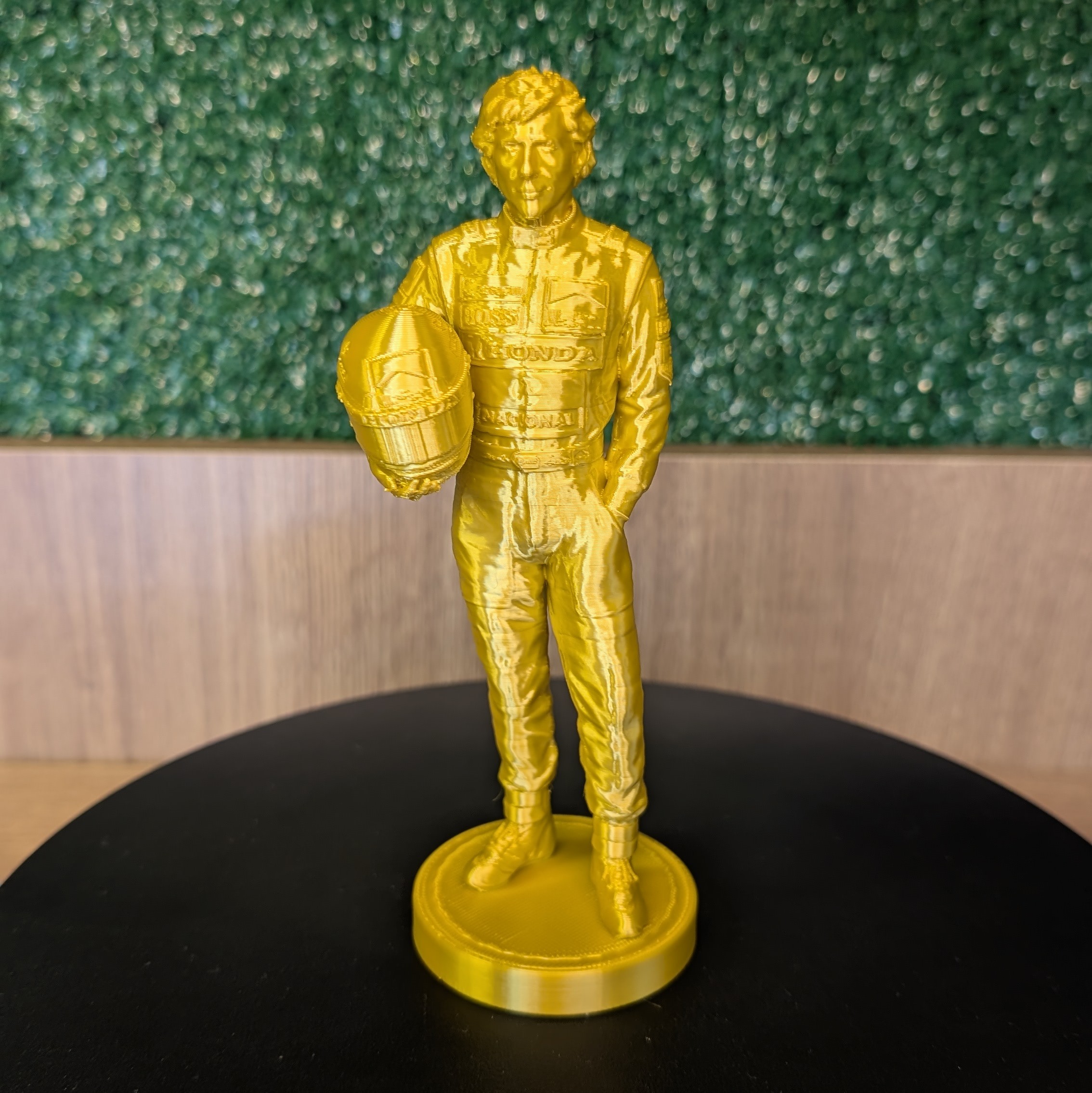 Peça exclusiva inspirada em Ayrton Senna, feita com riqueza de detalhes para colecionadores e admiradores.